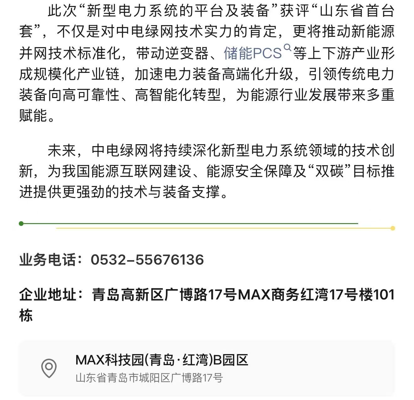 2025年10月30日,青島高新公眾號發(fā)布一篇“中電綠網(wǎng):山東省首臺套創(chuàng)新成果助力“數(shù)字能源”高質(zhì)量發(fā)展”報道,具體內(nèi)容如下: